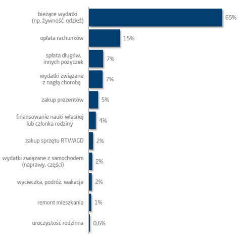 Badanie obala jeden ważny mit. Okazuje się, że chwilówki zaciągane w parabankach wcale nie są przeznaczane na spłatę innych kredytów. Zaledwie 7 proc. ankietowanych przyznaje, że chwilówkę przeznacza na spłatę długów. 65 proc. respondentów przeznacza pożyczkę na bieżące potrzeby, prawdopodobnie po to, by załatać dziurę w domowym budżecie. Kolejne 15 proc. opłaca chwilówką rachunki.