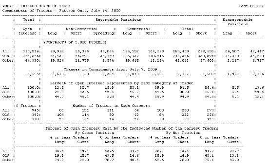 Amerykański nadzór zbiera dane o wszystkich liczących się kontraktach terminowych, jakimi obraca się na giełdach towarowych w USA. Informacje pochodzą z biur maklerskich oraz izb rozliczeniowych, które są zobowiązane raportować o pozycjach przekraczających limity wyznaczone przez CFTC. Według Komisji zagregowane w ten sposób dane reprezentują około 70-90% wszystkich otwartych pozycji na danym rynku.