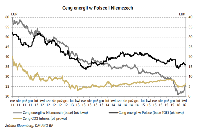 Sektor energetyczny w tym samym czasie musi się jednak mierzyć ze swoimi własnymi problemami. Analitycy DM PKO BP spodziewają się, że w 2016 roku sektorowy zysk operacyjny bez amortyzacji (EBITDA) spadnie o 10%. - Spadek wyników oczekiwany jest we wszystkich segmentach rynku. Wynika on zarówno z niższych cen energii, jak i wyższych kosztów CO2, a tym samym niższej marży na wytwarzaniu - czytamy w raporcie.