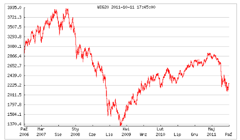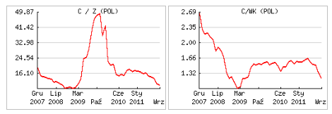 Spadki z ostatnich dwóch miesięcy sprowadziły wycenę akcji do poziomu zachęcającego do zakupów. Aż osiem spółek wchodzących w skład indeksu WIG 20 jest wyceniana poniżej wartości księgowej. Ponadto dla dziesięciu spółek wskaźnik cena do zysku pozostaje poniżej 10. Niewątpliwie wyceny spółek zachęcają do zakupów. Jednak opieranie się jedynie na wskaźnikach, bez oceny perspektyw gospodarki, może być mylące. Tymczasem sytuacja sektora finansowego, a także gospodarki, jest daleka od stabilizacji. Dlatego warto poczekać na wyraźne odwrócenie dotychczasowych tendencji, co obecnie jest niedostrzegalne.