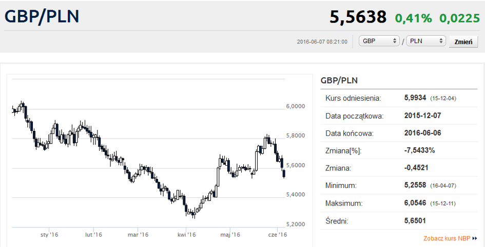 Z drugiej strony takie okresowe „wysychanie płynności” skutkujące dzikimi skokami notowań najczęściej zdarza się w okresach podwyższonego ryzyka. Rynki finansowe są mocno zaniepokojone konsekwencjami ewentualnego Brexitu. Niepokój wzmógł się w poniedziałek, gdy pojawiło się kilka sondaży wskazujących na przewagę zwolenników wyjścia Wielkiej Brytanii z Unii Europejskiej.