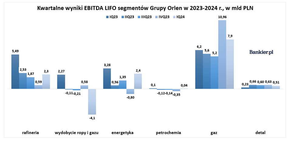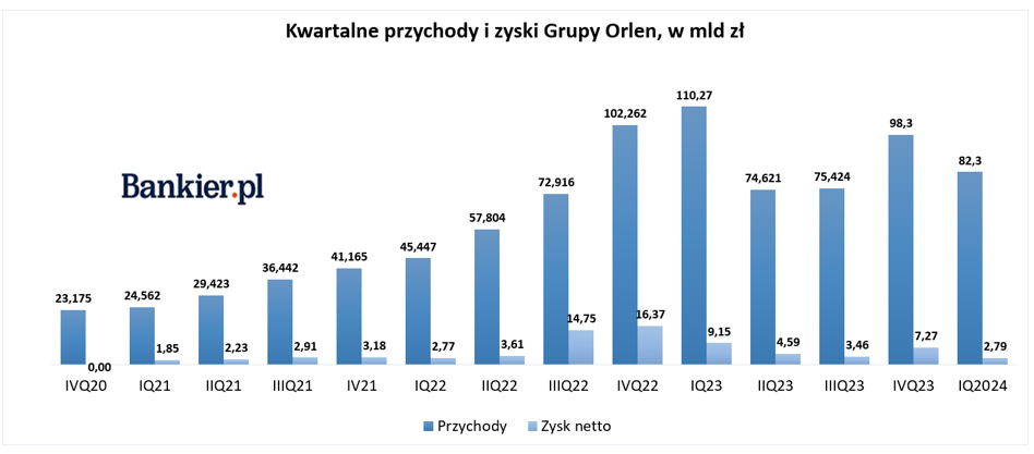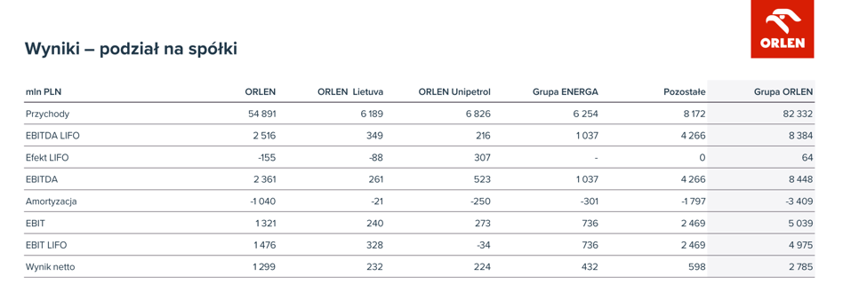 Wyniki za pierwszy kwartał wreszcie mogą być porównywalne rok do roku, ponieważ dopiero 2023 r., był pierwszym pełnym rokiem, w którym Grupa Orlen raportowała wyniki po wchłonięciu Lotosu i PGNiG. Zgodnie z międzynarodowymi standardami sprawozdawczości finansowej (MSSF), w przypadku skonsolidowanego rachunku zysków i strat, przychody przejętych spółek zależnych ujmuje się od dnia przejęcia kontroli nad nimi, a więc odpowiednio od daty 1 sierpnia 2022 r. dla Lotosu i 2 listopada 2022 r. dla PGNiG.