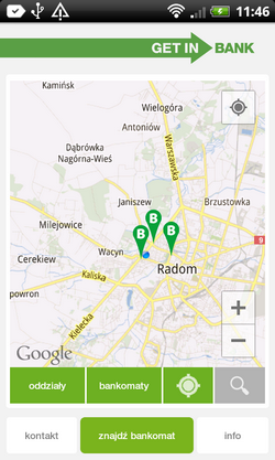 Aplikacja pozwala także zlokalizować najbliższe bankomaty banku, określając lokalizację użytkownika za pomocą GPS. Za pomocą aplikacji można połączyć się telefonicznie z infolinią lub wysłać e-mail z prośbą o kontakt. Program ma też zakładkę „Info”, ale jak do tej pory nie pojawiły się tam żadne informacje z banku.