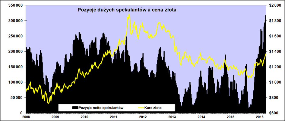 Pół roku później sytuacja odwróciła się o 180 stopni. Na rynku zapanowała wręcz panika kupna – wielu zarządzających nagle zapragnęło uzupełnić portfele złotem traktowanym jako polisa ubezpieczeniowa na niepewne czasy. Niepewność wzmogły objawy kryzysu bankowego w Europie, podwyżka stóp procentowych w USA oraz geopolityczny wstrząs, jakim okazał się rezultat brytyjskiego referendum.