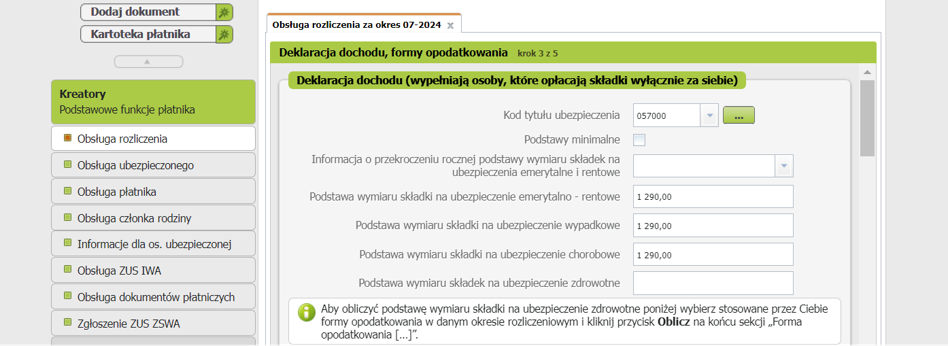 Na podstawie wprowadzonej wartości system wyliczy odpowiednie kwoty poszczególnych składek społecznych na zasadach preferencyjnych w następującej wysokości: