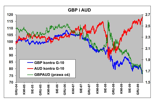 EURGBP 0.9000 0.8900 0.8300 | Jak już zauważyliśmy, w ostatnich tygodniach funt został ponownie zepchnięty na dno koszyka G-10. Jego sytuacja jest obecnie tak koszmarna, że niemal mamy ochotę kupić sobie trochę funciaków, ponieważ, jak pokazuje historia, nawet na dnie najgorszego dołka zdarza się, że z jakichś tajemniczych przyczyn trend nagle zaczyna się odwracać — podobnie zresztą ma się sprawa z górkami. Niemniej obecnie wolelibyśmy się powstrzymać od działania. Mimo że retoryka Bank of England jest teraz mniej gołębia, Zjednoczone Królestwo boryka się właśnie z najstraszniejszą wśród ważnych walut poza Japonią sytuacją fiskalną (nawet w Japonii jest jednak znacznie lepiej, jeżeli weźmie się pod uwagę olbrzymi deficyt na brytyjskim rachunku obrotów bieżących oraz brak rezerw walutowych) i najpoważniejszymi wśród państw z peryferii strefy euro problemami ogólnymi. Funt musi sobie obecnie radzić z trzema istotnymi źródłami kłopotów (czterema, jeżeli weźmie się pod uwagę olbrzymią transakcję zakupu AIA przez Prudential). Pierwszym jest brak wiarygodności planów mających na celu zapanowanie nad olbrzymim narosłym deficytem, z którym Zjednoczone Królestwo musi sobie radzić mimo związanej z niższym poziomem długu narodowego początkowej przewagi w stosunku na przykład do Niemiec (należy pamiętać o komentarzu PIMCO, zgodnie z którym prawdopodobieństwo ostatecznego bankructwa Zjednoczone Królestwa wzrośnie, jeżeli nie zostaną wdrożone bardziej agresywne plany oszczędnościowe). Drugim z problemów jest niepokojąca możliwość impasu parlamentarnego po najbliższych wyborach (które muszą odbyć się najpóźniej 3 czerwca), jak również obawa przed tym, że pozbawiony solidnego wsparcia rząd nadal opóźniałby wszelkie zdecydowane działania zmierzające do ukrócenia nadmiernych wydatków. Po trzecie, mamy do czynienia ze starą, dobrą słabością gospodarczą: sądząc z ostatnich raportów, bardzo słaby funt bynajmniej nie pomógł brytyjskim producentom, a mierniki wzrostu poważnie zawiodły oczekiwania. Bilans handlowy również zanurkował w niewłaściwym kierunku, co tylko pogorszyło sytuację fiskalną i wzmogło ryzyko bankructwa rządu (robi się wokół tego mnóstwo hałasu, chociaż wzrostu zagrożenia nie widać szczególnie w cenach CDS-ów czy na rynku obligacji). Jakby tego było mało, Urząd Regulacji Rynków Finansowych (FSA) ogłosił ostatnio, że będzie wymagać od banków przeprowadzania nowych, jeszcze surowszych stress testów, co może stłumić wszelką dynamikę sektora usług finansowych, którego rola w przeszłości okazywała się niezwykle istotna. Mieliśmy wreszcie do czynienia ze wzrostem inflacji — Mr King i jego kompani z Bank of England mają nadzieję, że jest to zjawisko tymczasowe. Uważamy, że nad funtem gromadzą się ciemne chmury — z pewnością wszystko wygląda okropnie, niemniej spora liczba okropności została już zdyskontowana w obecnej wycenie. Uważamy, że na dłuższą metę Brytyjczycy będą musieli znaleźć sposób wydobycia się z tego chaosu. Są chętni na grę wbrew wszystkim na GBPNZD lub GBPAUD?