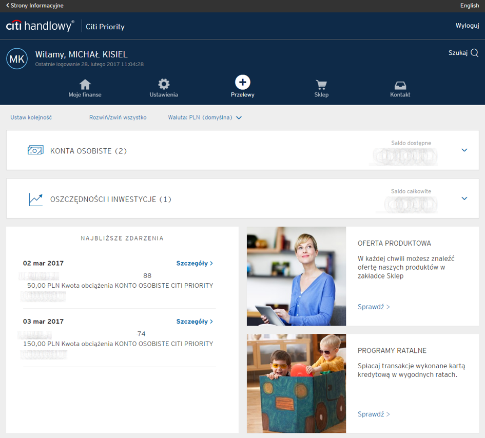Taki system 28 lutego udostępnił klientom Citi Handlowy. Jest znacznie bardziej rozbudowany od poprzedniej wersji CitiOnline. Użytkownik może go „poukładać” po swojemu, czyli wyciągnąć na pulpit najczęściej używane skróty. Ma też możliwość aktywnego zarządzania produktami – limitami kart, rozkładaniem zakupów na raty czy blokowaniem zgubionych plastików.