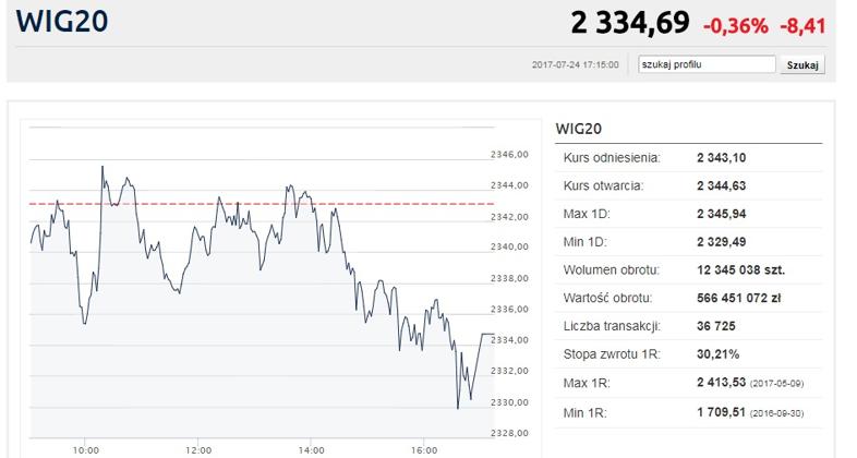 | WIG 20 | Polska | 2334,69 | -0,36 | -1,58 | 1,31 | 30,21 | 19,86 |