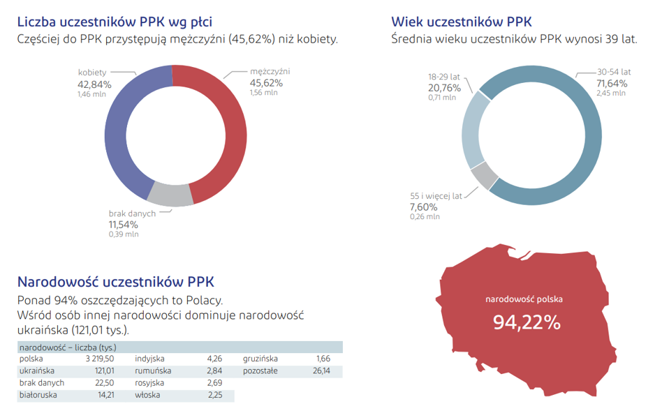 W Pracowniczych Planach Kapitałowych uczestniczy obecnie 3,42 mln osób z 321 tys. podmiotów, co oznacza wzrost miesiąc do miesiąca o 30 tysięcy osób. Jednocześnie liczba aktywnych rachunków PPK przekroczyła 4 miliony. Więcej rachunków niż osób, wynika z tego, że pracownik może być zapisany do więcej niż jednego programu, jeśli na przykład pracuje w dwóch miejscach.