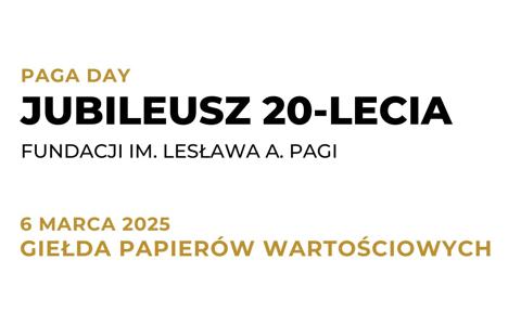 2025-03-06 13:50Jubileusz 20-lecia Fundacji im. Lesława A. Pagi: PAGA DAY – Święto Liderów JutraFundacja im. Lesława A. Pagi obchodzi w tym roku swoje 20-lecie. Z tej okazji, 6 marca 2025 roku, odbędzie się wyjątkowe wydarzenie – PAGA DAY. To nie tylko jubileusz, ale także przestrzeń do refleksji nad przeszłością, teraźniejszością i przyszłością liderów polskiej gospodarki.