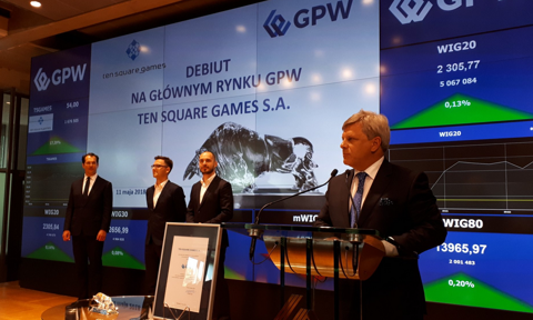 2019-05-24 18:04Ten Square Games wypłaci 3,78 zł dywidendy na akcjęWalne zgromadzenie Ten Square Games zdecydowało, aby spółka wypłaciła w formie dywidendy za 2018 rok łącznie 27,3 mln zł, czyli 3,78 zł na akcję - poinformowała spółka w komunikacie. 2019-05-24 18:04Ten Square Games wypłaci 3,78 zł dywidendy na akcjęWalne zgromadzenie Ten Square Games zdecydowało, aby spółka wypłaciła w formie dywidendy za 2018 rok łącznie 27,3 mln zł, czyli 3,78 zł na akcję - poinformowała spółka w komunikacie.
