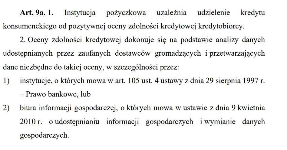 (Ustawa o kredycie konsumenckim) Co istotne wśród opcji sprawdzenia historii kredytowej pojawia się weryfikacja w BIG-u, a więc jednym z Biur Informacji Gospodarczej. Poszczególni pożyczkodawcy mogą więc dokonać analiz w nieco odmienny sposób. Ważne jest to, by ocena była oparta na podstawie danych od zaufanych dostawców.