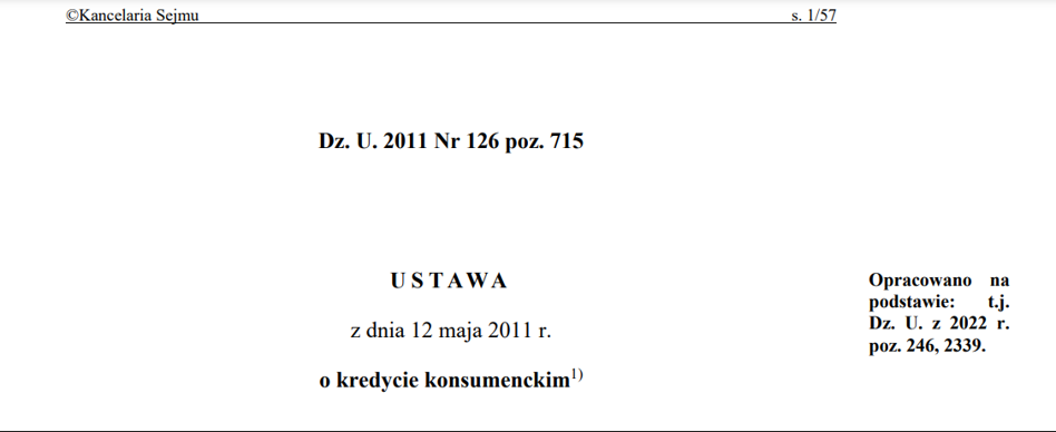 Cały tekst Ustawy o kredycie konsumenckim można znaleźć na stronie Kancelarii Sejmu.