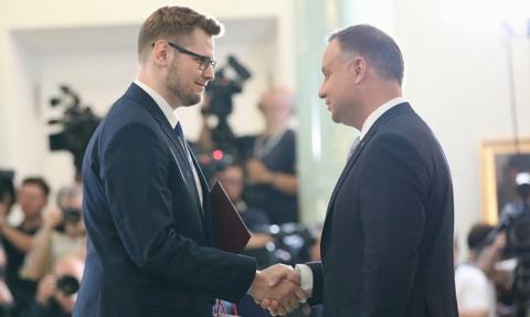 2019-06-04 13:58Michał Woś ministrem-członkiem Rady MinistrówByły wiceminister sprawiedliwości, a ostatnio - od listopada ub.r. - członek zarządu woj. śląskiego Michał Woś został we wtorek ministrem-członkiem Rady Ministrów. To jeden z najmłodszych ministrów w ostatnim 30-leciu - w lutym ukończył 28 lat.