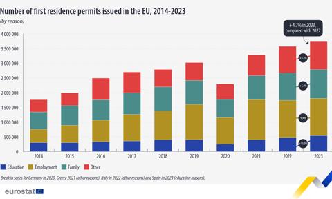 2024-09-12 12:06EUROSTATPolska wydała najwięcej pozwoleń na pobyt w UE dla osób spoza UniiW 2023 roku wydano 3,7 mln pierwszych zezwoleń dla osób spoza Unii Europejskiej na pobyt w Unii. Polska była liderem w tej kategorii - podał Eurostat. 2024-09-12 12:06EUROSTATPolska wydała najwięcej pozwoleń na pobyt w UE dla osób spoza UniiW 2023 roku wydano 3,7 mln pierwszych zezwoleń dla osób spoza Unii Europejskiej na pobyt w Unii. Polska była liderem w tej kategorii - podał Eurostat.