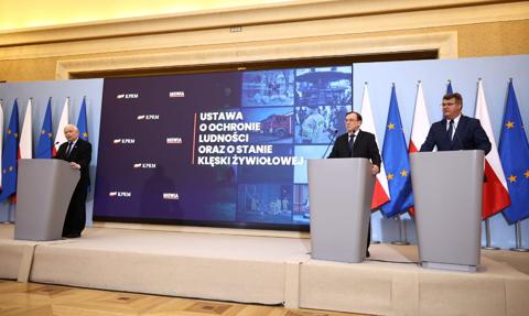 2022-06-14 14:23Ustawa o ochronie ludności. Kaczyński i Kamiński przedstawili szczegółyWe wtorek wicepremier i szef komitetu ds. bezpieczeństwa Jarosław Kaczyński wraz z szefem MSWiA Mariuszem Kamińskim i wiceszefem MSWiA Maciejem Wąsikiem zaprezentował założenia projektu ustawy o ochronie ludności i stanie klęski żywiołowej.