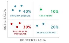 Prof. Heike Bruch z uniwersytetu w St.Gallen prowadzi badania na temat determinacji i efektywności pracowników. W jednym ze swoich badań stworzyła matrycę, która składa się z dwóch osi: mobilizacji i koncentracji. Prof. Bruch wykazała, że w badanych firmach tylko ok. 10% pracowników jest jednocześnie skoncentrowanych i zmobilizowanych. Jest to grupa najbardziej pożądana przez pracodawców, łączy bowiem efektywność oraz pełne wykorzystanie energii. Ludzie ci osiągają efekty przy najmniejszym koszcie własnym, osiągają tzw. stan flow. Pewnie każdy kiedyś tego doświadczył – pełnego energii i motywacji zaangażowania w pracę. Niestety, w stanie takim pozostaje tylko co dziesiąty pracownik.