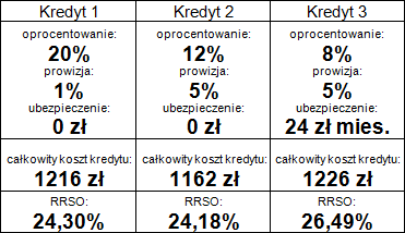 - pożyczymy 10 tys. zł na rok, to koszt kredytu wyniesie 10 proc.,