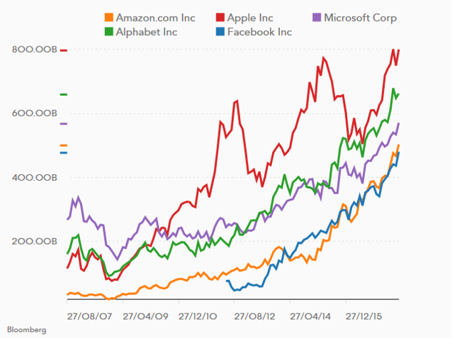 Podczas wczorajszej sesji na Wall Street cena waloru Amazona wzrosła o 1,24 proc., do 1052,80 dolarów. Dzięki temu kapitalizacja spółki przekroczyła granicę 500 mld dol. i obecnie wynosi 503,2 mld. Dotychczas ten poziom przeskoczyły tylko Apple, Alphabet (właściciel Google) i Microsoft.