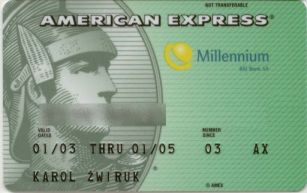 Bank Millennium wydaje dwa typy kart Amex - zwykłą i złotą. Zwykłą - zieloną kartę Amex może mieć każdy czyje zarobki netto przekraczają sumę około 1500 zł. Karta Banku Millennium jest tez stosunkowo tania, bo kosztuje 70 zł. Niestety karta musi być przypisana do rachunku wiec trzeba także założyć sobie, płatny już oddzielnie rachunek w Banku Millennium. Oprocentowanie kredytu wynosi 30%, a spłata kredytu bez odsetek może nastąpić nawet 50 dni po dokonaniu transakcji. Karta Złota wymaga zarobków ponad 12.000 zł netto a koszt jej utrzymania to 400 zł rocznie.