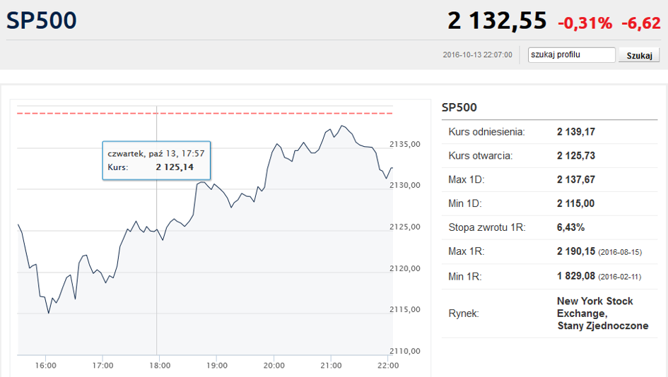 Po pierwszych 40 minutach handlu S&P500 tracił ponad 1,1% i nic nie wskazywało na to, aby sytuacja miała się odwrócić. Inwestorzy w Ameryce, podobnie jak w Europie, negatywnie reagowali na dane z Chin, gdzie we wrześniu odnotowano zaskakująco silny, bo aż 10-procentowy, spadek wartości eksportu.