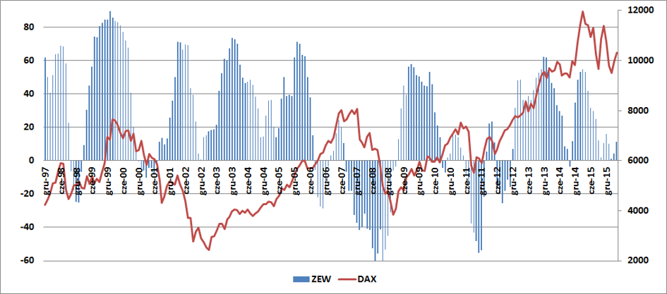 „Zaskakująco pozytywne wiadomości gospodarcze z Chin wydają się poprawiać nastroje wśród analityków rynku finansowego (…) Jednakże utrzymujący się słaby wzrost w Chinach i innych ważnych rynkach wschodzących będzie stanowił brzemię dla niemieckiego przemysłu eksportowego. Ponadto obawy przed możliwym wyjściem Wielkiej Brytanii z UE wydają się mieć negatywny wpływ” – skomentował wyniki kwietniowego badania profesor Sascha Steffen, szef działu analiz ZEW.