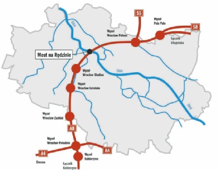 Jak powiedziała w środę dziennikarzom Lidia Markowska, zastępca dyrektora ds. inwestycji wrocławskiego oddziału Generalnej Dyrekcji Dróg Krajowych i Autostrad, dzięki obwodnicy można ominąć stolicę Dolnego Śląska w 15 minut. "Jadąc zaś ulicami Wrocławia potrzeba na to ponad godziny" - tłumaczyła.