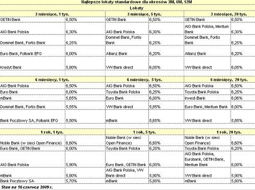 Do niedawna banki konkurowały na rynku oprocentowaniem lokat trzymiesięcznych. Dziś najlepsze lokaty zakładane na okres 90 dni przynoszą 6,5 proc. zysku. Taką stawkę proponuje GETIN Bank osobom, które otworzą konto internetowe. Powyżej 6 proc. na standardowych lokatach terminowych oferują jeszcze AIG Bank, Meritum Bank (6,3 proc.), Dominet Bank, Fortis Bank (6,25 proc.), Allianz Bank (6,20 proc.) i VW Bank direct (6,05 proc.). Jednocześnie pojawia się coraz więcej wysokooprocentowanych lokat na nietypowe okresy, np. 4, 7 czy 9 miesięcy.
