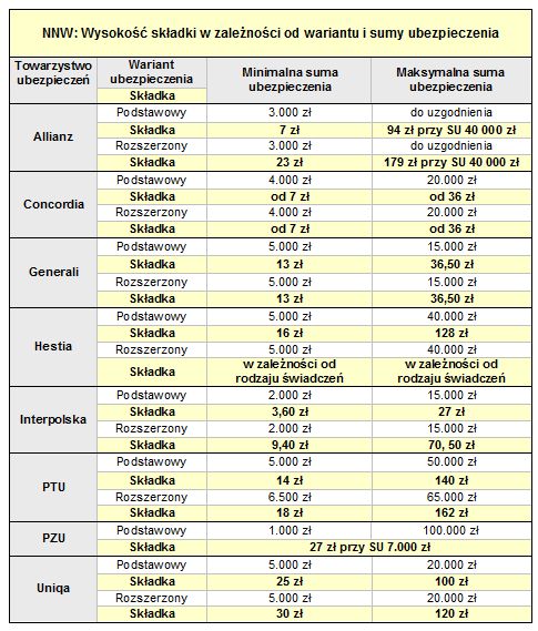 To, ile zapłacimy za roczną ochronę, będzie zależało od przyjętej sumy ubezpieczenia. W produktach typu NNW, gwarancja zakładu ubezpieczeń sięga zwykle od kilku do kilkunastu tysięcy złotych. Bardzo często towarzystwa określają minimalną sumę ubezpieczenia – czasami, jak w przypadku PZU, będzie to 1 tys. zł, innym razem (Hestia, Uniqa) nawet 5 tys. zł. Klient ma zwykle do wyboru kilka wariantów ubezpieczenia – czym większą dają ochronę i na czym większą sumę opiewają, tym drożej za nie zapłacimy. Lecz na ile konkretnie możemy liczyć z tytułu ubezpieczenia NNW?