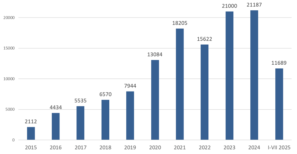 Jeśli założymy, że bankructw będzie przybywać w obecnym tempie w kolejnych 5 miesiącach, to rok 2025 może zamknąć się wynikiem ok. 20 tys. upadłości konsumenckich. Taki scenariusz zakończyłby długi okres wzrostów, ciągnący się od początków tej instytucji w Polsce. Jedynym wyjątkiem do tej pory był rok 2022, w którym cyfryzacja procedury upadłościowej doprowadziła do zawirowań w toczących się sprawach i „technicznego” spadku liczby ogłoszeń.