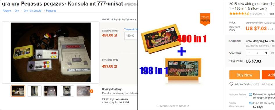 Wydawałoby się, że pierwsza generacja konsol domowych to już zamierzchła historia, ale interes na tzw. famiklonach (klonach oryginalnego Famicoma) kręci się do dziś. Na portalach aukcyjnych czy Aliexpress, a także z pewnością na miejskich targowiskach i bazarach, można nabyć świeżo wyprodukowane kopie. Dla tych, którzy uważają design Pegasusa/Famicoma za przestarzały, sprzedawcy zaproponują nawet coś bardziej „nowoczesnego”.