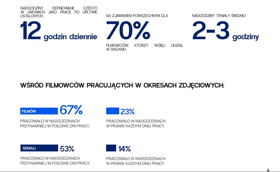 - 21 proc. filmowców pracowało w nadgodzinach w większości dni,