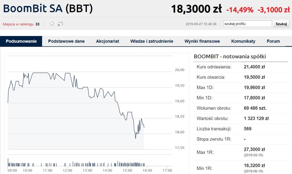 W I półroczu 2019 roku BoomBit osiągnął 22,2 mln zł przychodów ze sprzedaży, z czego 14,0 mln zł w samym II kwartale, co oznacza wzrost o 71% względem I kwartału. Wynik netto za I półrocze był jednak aż 1,3 mln zł na minusie. Spółka miała ponadto w tym czasie ponad 1,8 mln zł ujemnych przepływów operacyjnych, co oznacza, że podstawowa działalność generuje także straty gotówkowe.