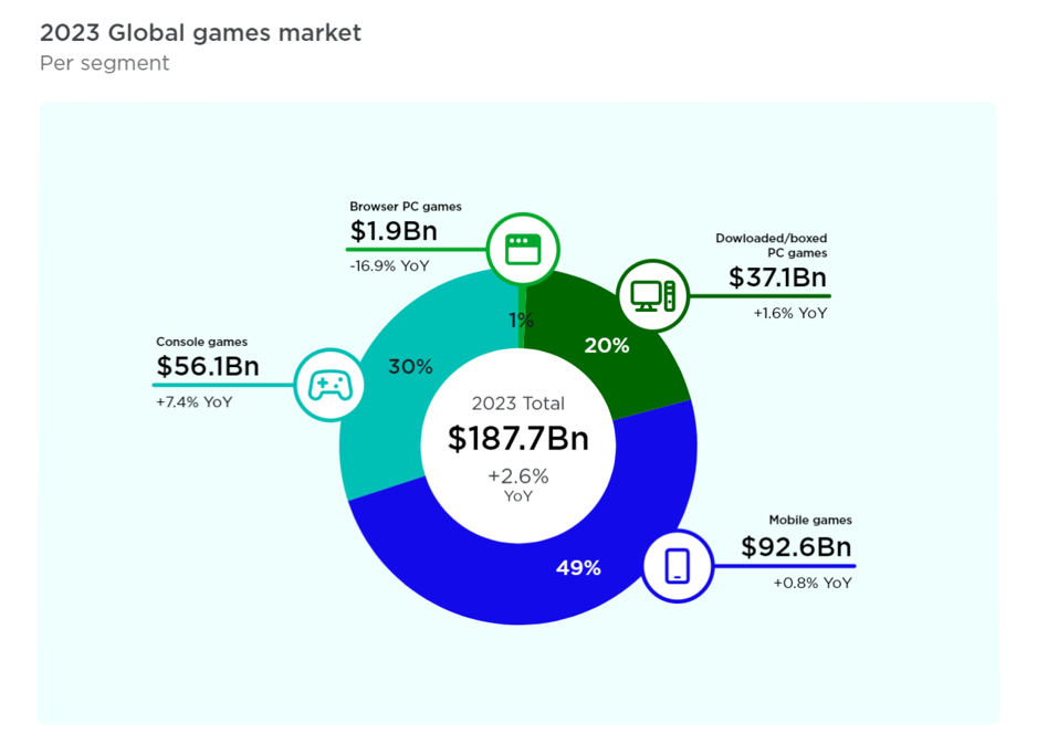 W poprzedniej edycji i jej grudniowej rewizji Newzoo stwierdził, że w 2022 r. przychody sektora gier spadły o 4,3 proc. rdr., wiosną tego roku jeszcze raz zaktualizował dane, według których przychody wyniosły niespełna 183 mld dol, czyli były o 5,1 proc. niższe rok do roku. Miał to być pierwszy taki rok, od kiedy firma publikuje swoje raporty, czyli od 15 lat.