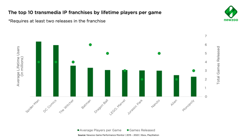 Ponadto Newzoo zwraca uwagę m.in. na temat transmediów, czyli przenikania się franczyz z różnych branż związanych z mediami, które pozwalają generować sektorowi gier dodatkowe przychody. W historii branży istnieje wiele przypadków transmedialnej własności intelektualnej, żeby wspomnieć tylko „Wiedźmina” czy „Cyberpunk 2077” z własnego podwórka. Zresztą „Wiedźmin” to jedna topowych transmediowych franczyz według niedawnego wpisu Newzoo na ich blogu.