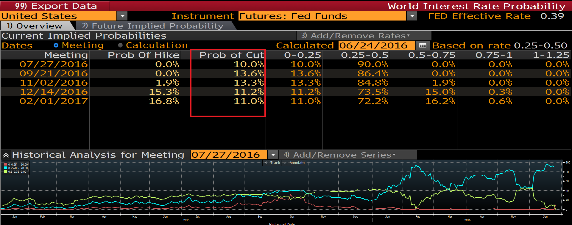 O ile rynek przed referendum wyceniał jedną podwyżkę w USA na początku 2017 roku, o tyle teraz wycenia ją z prawdopodobieństwem wynoszącym jedynie 16%. Co więcej, z 10% prawdopodobieństwem wskazuje na cięcie stóp procentowych na lipcowym posiedzeniu, jednakże raczej do tego nie dojdzie. Taki wydźwięk przekłada się negatywnie na dolara amerykańskiego w długim terminie.