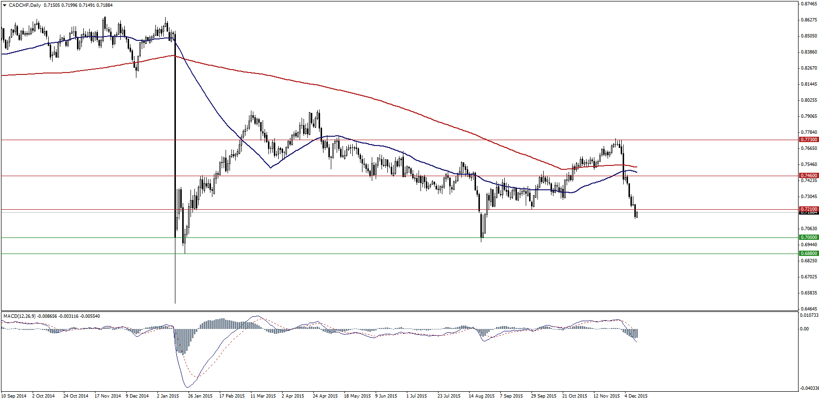 Szwajcarzy postanowili w zeszłym tygodniu nie zmieniać, przynajmniej na razie, swojej polityki monetarnej, zauważając jednocześnie, że frank wciąż jest zbyt drogi – Szwajcarski Bank Narodowy niczym więc nie zaskoczył. W reakcji na te doniesienia CHF umocnił się zatem jeszcze bardziej. Z kolei dolar kanadyjski wciąż jest torpedowany przez taniejącą ropę naftową i nie wydaje się, aby coś w tej kwestii miało się w najbliższym czasie zmienić.