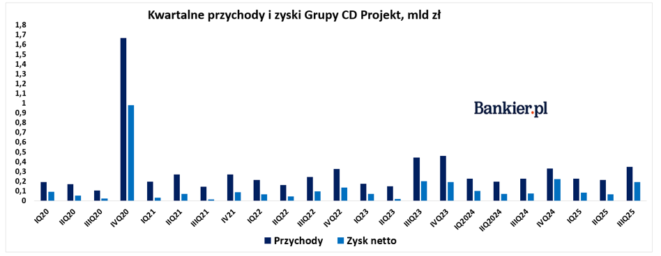 W środę, 26 listopada CD Projekt zaprezentował swój raport finansowy za trzeci kwartał 2025 r., w którym producent gry „Cyberpunk 2077” zanotował najwyższe przychody ze sprzedaży od końca 2023 r. Zysk netto okazał się o ponad 18 proc. wyższy od konsensusu i był drugim najwyższym z ostatnich siedmiu kwartałów. Analitycy nie doszacowali także popytu na gry studia jak Cyberpunk 2077 i czy „Wiedźmin 3”, bo przychody były o ponad 7 proc. wyższe od prognoz.