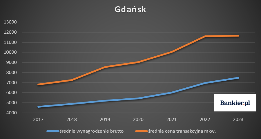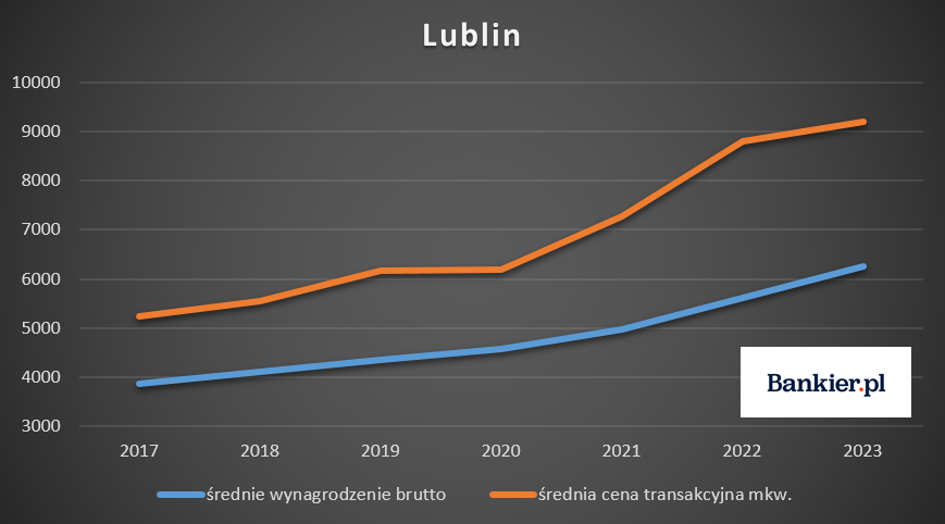 Sześć lat później, we wrześniu 2023 r. średnie wynagrodzenie brutto w sektorze przedsiębiorstw kształtowało się na poziomie od 6262 zł w Lublinie do 8379 zł w Warszawie. Średnie stawki transakcyjne na rynku pierwotnym w przeliczeniu na metr kwadratowy wahały się z kolei od ok. 8,7 tys. zł w Łodzi do 14 tys. zł w Warszawie.