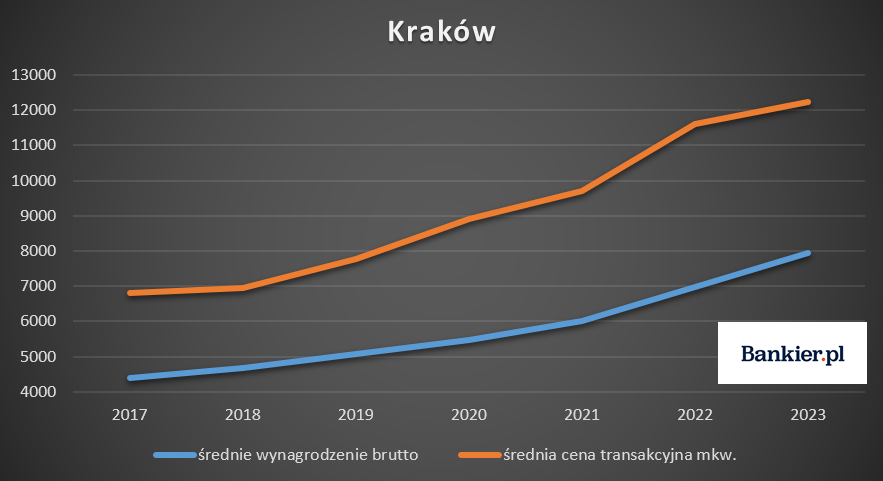 Oznacza to, że na odłożenie równowartości 60-metrowego mieszkania potrzeba było od 72 (Łódź), do 93 pensji średnich pensji brutto (Kraków).