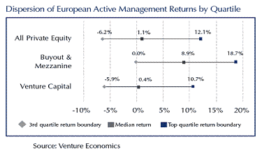 Ważnym argumentem za inwestycją private equity jest zaangażowanie i motywacja zarządzających. Ich wynagrodzenie uzależnione jest bezpośrednio od osiągniętych rezultatów mierzonych stopą zwrotu. Zarządzający jak nikt inny dbają o to by firmy, w które decydują się zainwestować miały potencjał wzrostu i aktywnie tworzą sprzyjające warunki do tego wzrostu. Firmy i fundusze private equity inwestując w firmę przejmują pakiet kontrolny, decydują o obsadzeniu stanowisk managerskich, decydują o strategii i kierunkach rozwoju. Zarządzający stosują dźwignię finansową, łącząc różne opcje finansowania działalności poprzez dług. Efektywne zarządzając finansowaniem kapitału spółki, zarządzający w sposób pozytywny wpływają na potencjalne stopy zwrotu z inwestycji. Jak ważnym czynnikiem jest dobór zarządzającego przedstawia poniższy wykres. Widać na nim, że wybór managerów z górnego kwartyla gwarantuje wyższe stopy zwrotu z inwestycji.