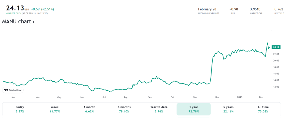 Akcje klubu notowane na giełdzie w Nowym Jorku rosły o ok. 2,5 proc. do 24,13 dol. Pierwsze doniesienia o katarskim zainteresowaniu, które pojawiły się w brytyjskiej prasie w połowie zeszłego tygodnia za sprawą publikacji "Daily Mail", podniosły kurs akcji Czerwonych Diabłów do 25,39 dol. i był to najwyższy poziom od wakacji 2018 r.