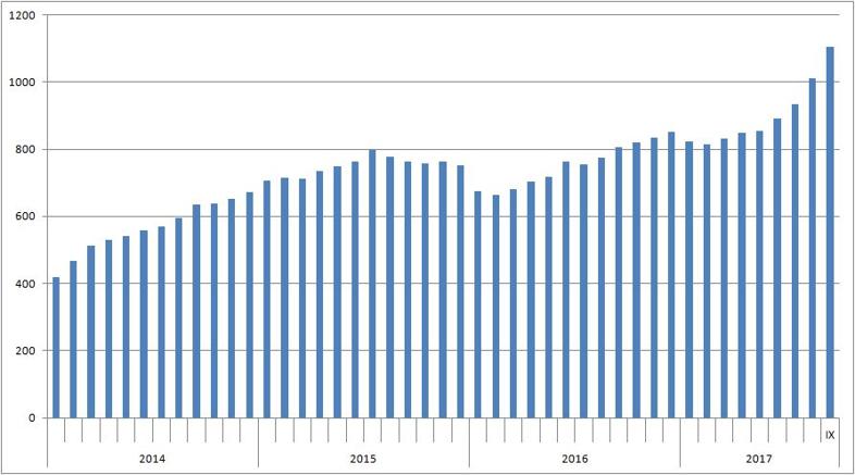 Limity i ograniczenia w wycofywaniu środków zostały zniesione na początku 2016 r., po półtora roku gwałtownego odpływu kapitału zza Muru i wyraźnym przyspieszeniu emisji obligacji przez krajowe podmioty. Udział zagranicy wynosił na koniec marca 2017 r. zaledwie 1,25 proc., pół roku później było to już 1,5 proc. - w rękach zagranicznych inwestorów znalazły się obligacje o wartości 1,1 bln juanów (166 mld dol.).