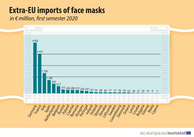W pierwszym półroczu 2020 roku wartość importu maseczek do Unii Europejskiej wyniosła aż 14 mld euro. To gwałtowny wzrost względem 0,8 mld euro w analogicznym okresie roku poprzedniego. Głównym powodem takiego stanu rzeczy jest oczywiście pandemia koronawirusa.