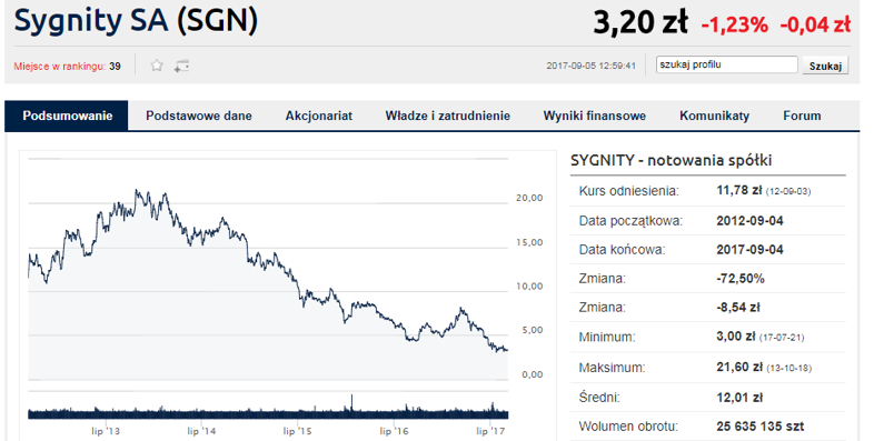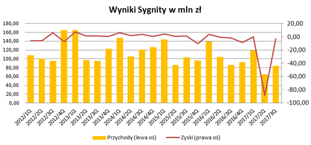 To zresztą dało już o sobie w tym roku znać, gdy na początku lipca obligatariusze upomnieli się o swoje pieniądze, po tym jak spółka naruszyła kowenanty. Pożar udało się wprawdzie ugasić, jednak sytuacja ta pokazała, na jak cienkiej linie balansuje Sygnity. Warto dodać, że problemy pojawiły się wraz z katastrofalnymi wynikami za pierwsze półrocze. Spółka dokonała wówczas aktualizacji wycen. Największą pozycję stanowił odpis w wysokości ok. 76,2 mln zł związany z wyceną wieloletniego projektu z zakresu administracji publicznej.