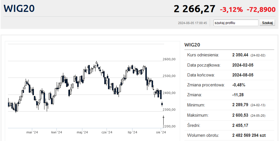 Sentymentu inwestycyjnego nie poprawiały też doniesienia ze świata. W Wielkiej Brytanii trwają antyimigranckie zamieszki. Iran grozi Izraelowi odwetem za śmierć w zamachu bombowym w Teheranie politycznego lidera Hamasu. Antyrządowe zamieszki od tygodni trwają też w Bangladeszu, gdzie premier została zmuszona do opuszczenia kraju. Wciąż też trwa rosyjska ofensywa na Ukrainie, a wojska ukraińskie atakują cele w Rosji. Na to nakłada się początek cyklu obniżek stóp procentowych w bankach centralnych krajów rozwiniętych, co w przeszłości towarzyszyło okresom dekoniunktury gospodarczej i kryzysów finansowych.
