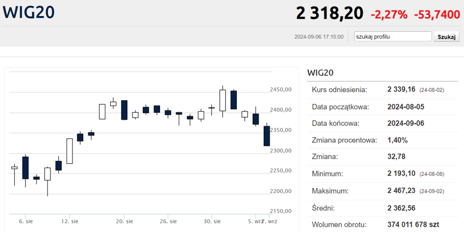 W pierwszym tygodniu września WIG20 stracił prawie 3,9 proc. a WIG 3,68 proc. Sytuacja wpisuje się więc jak dotąd w sezonowe statystyki, zgodnie z którymi miesiąc ten przynosi zazwyczaj spadki na giełdach.