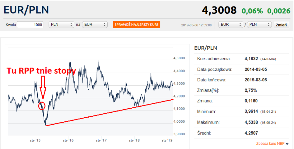 Obrońcy niskich stóp w NBP mogą wysunąć argument, że nasza Rada nie chciała „kopać się z koniem”. Owym koniem jest Europejski Bank Centralny, który obniżył stopę depozytową poniżej zera i uruchomił skup obligacji skarbowych państw strefy euro. W ten sposób EBC sprowadził nawet długoterminowe stopy procentowe poniżej lub w okolice zera, umożliwiając radosne zadłużanie się rządom Włoch czy Hiszpanii. Zatem reakcja RPP z marca 2015 stanowiła odpowiedź na posunięcia EBC i mogła mieć na celu uniknięcie nadmiernej aprecjacji złotego.
