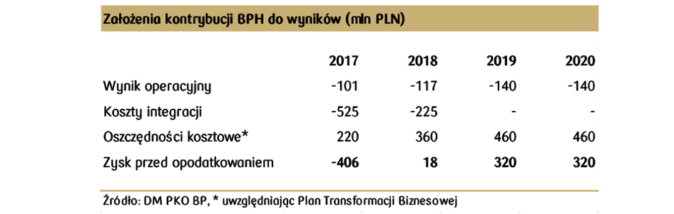 Koszty integracji to jednak wydatek jednorazowy. Synergie kosztowe będą widoczne w raporcie finansowym co roku. - W naszych prognozach zakładamy, że począwszy od 2018 Bank BPH zacznie pozytywnie kontrybuować do wyników Aliora,. Pełny efekt będzie jednak widoczny dopiero w 2019, kiedy zostanie osiągnięta pełna skala oszczędności oraz nie będzie już kosztów integracji. Docelowo szacujemy, że akwizycja BPH powinna dodawać ok. 200 mln PLN zysku netto (uwzględniając podatek bankowy) - oceniają analitycy DM PKO BP.