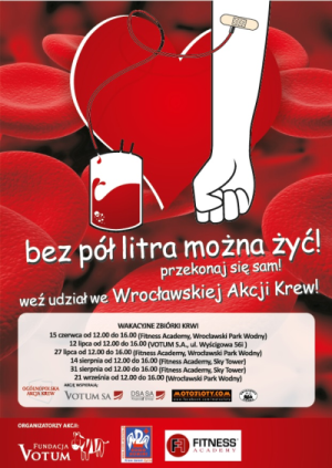 Jeden z plakatów akcji zachęcającej do podzielenia się krwią. Źródło: votum-sa.pl